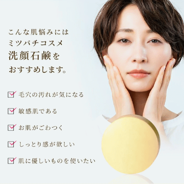 By gently washing your face with MITSUBACHI COSME' facial cleansing soap in the morning and evening, you can remove any dirt from your pores and achieve smooth skin.