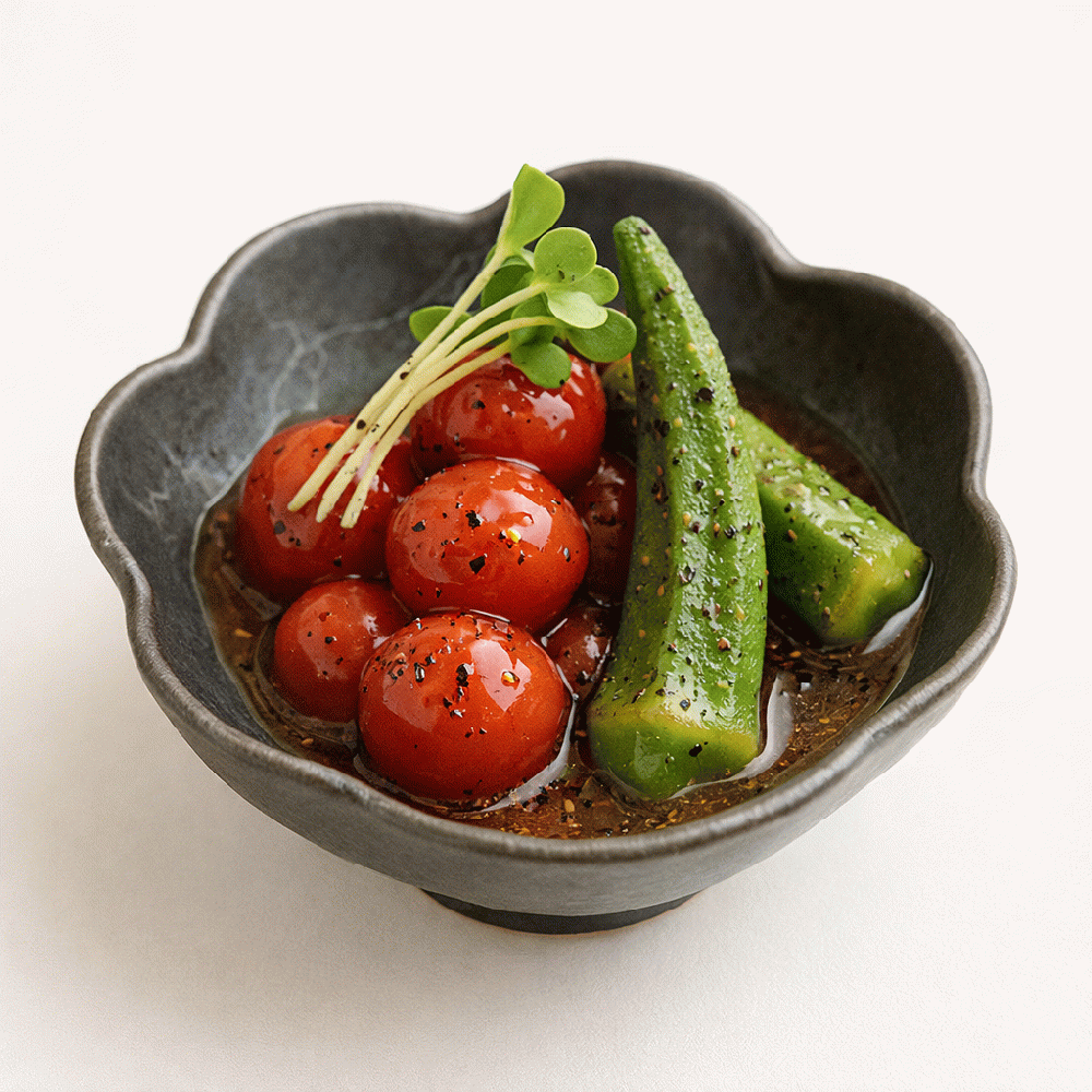 Okra and Tomato Honey Vinegar Marinade