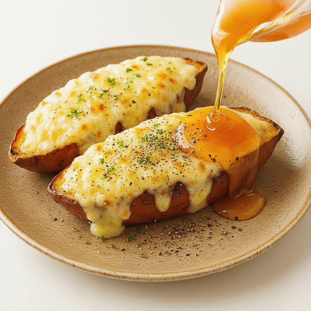 Baked sweet potato with cheese and Manuka Honey