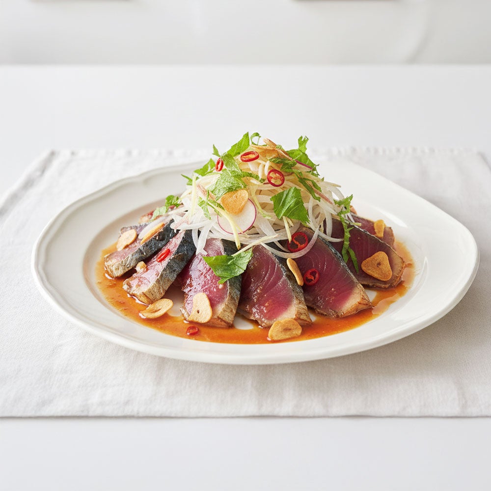 Seared bonito with spicy honey sauce