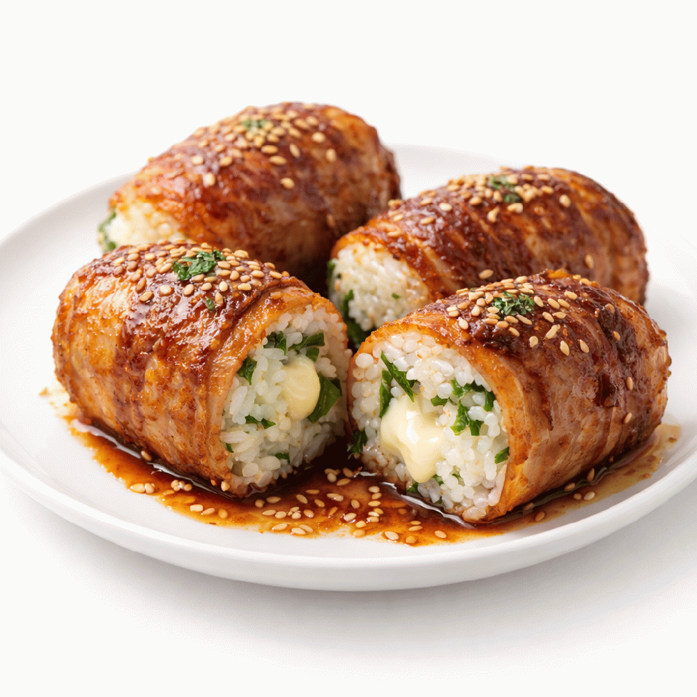 Honey-wrapped meat rice balls with shiso cheese