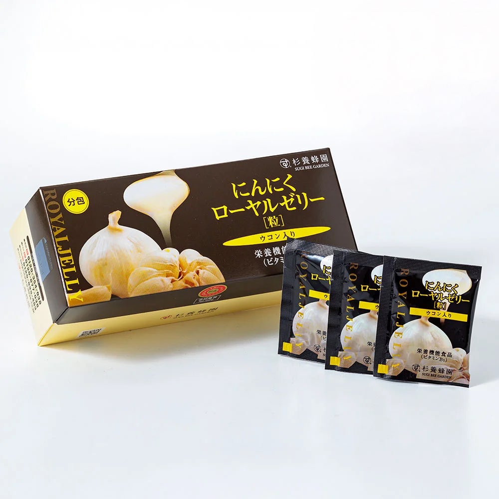 杉養蜂園のにんにくローヤルゼリーは、栄養の宝庫と言われるローヤルゼリー、国産無臭にんにくに含まれる『アリシン』、さらに『クルクミン』を含むウコンを、独自のバランスで配合しています。