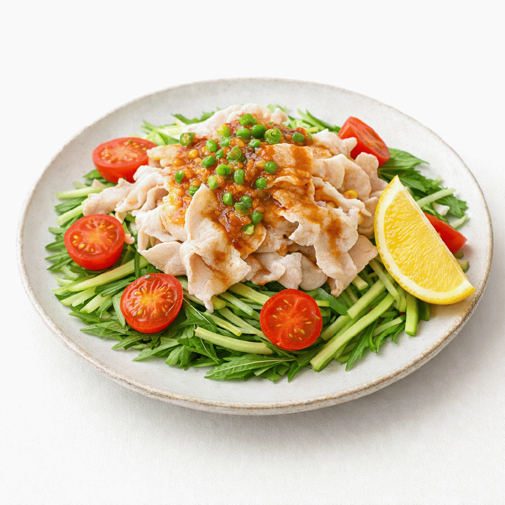 사과 식초의 양념이 일품! 상쾌하게 돼지고기의 여름 야채와 함께
